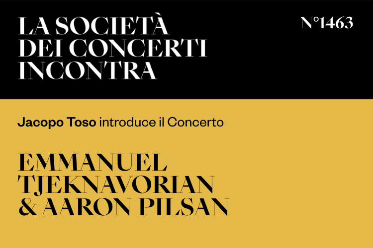 Il nuovo appuntamento, con ingresso libero, per scoprire informazioni e curiosita del concerto della sera: Lunedì 13 Gennaio il Concerto di Emmanuel Tjeknavorian e Aaron Pilsan sarà introdotto dal nostro Socio e membro del Direttivo Jacopo Toso.