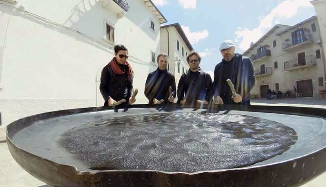 L’ultimo brano della performance vedrà protagonista proprio l’acqua: Japigia di Fernando Sulpizi prevede la presenza di un coperchio di silos messo “a pancia in su” e riempito d’acqua sul quale i quattro percussionisti eseguono dei ritmi ostinati di alcuni minuti per poi concludere suonando dentro l’acqua. Questa cosa causa schizzi d’acqua di una certa importanza rendendo il finale del pezzo una sorta di rito battesimale molto particolare.