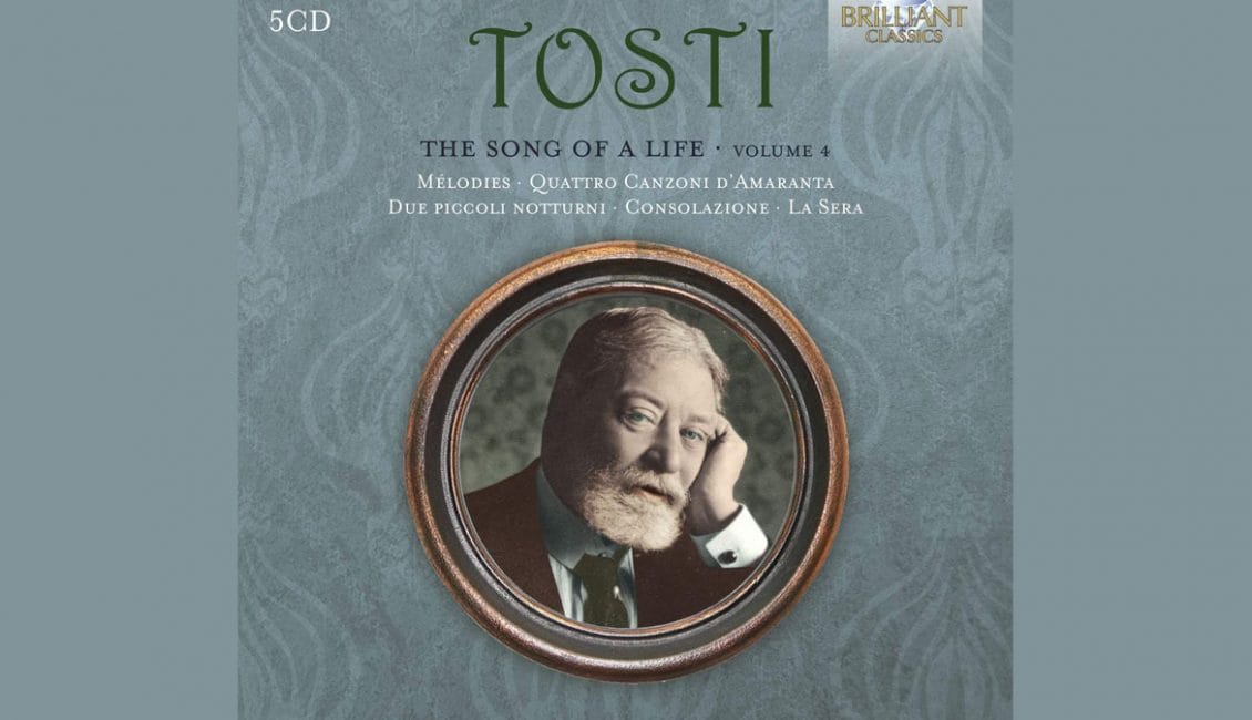Recentemente – per l’etichetta BRILLIANT CLASSICS – è uscito il IV e ultimo cofanetto di The Song of a Life, l’integrale discografica delle romanze di Francesco Paolo Tosti realizzata dalla nostra Associazione in collaborazione con l’Istituto Nazionale Tostiano. In questo cofanetto – 5 CD, 98 romanze – cantano: Monica Bacelli, Maria Bagalà, Donata D’Annunzio Lombardi, Riccardo Della Sciucca, Cinzia Forte, Giovanni Meoni, Giuseppina Piunti, John Viscardi.