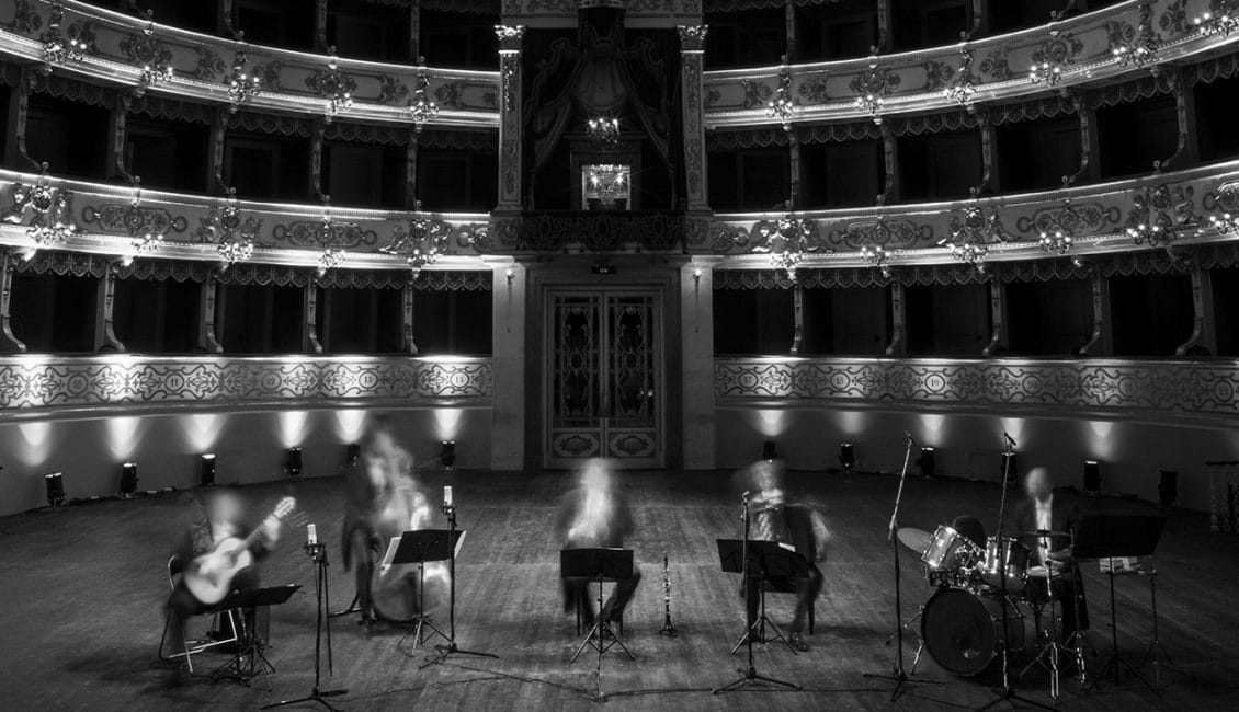 In tutte le tappe della Stagione concertistica, Daniele Ratti ha immortalato un preciso brano del programma, un fotogramma realizzato con tempi di esposizione lunghi al fine di imprimere sull’immagine statica del teatro il movimento degli artisti sul palco.