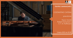 Giovedì 3 marzo 2022 alle ore 20.30 al Teatro Sannazaro, Costantino Catena inaugura la Stagione Concertistica 2022 con un programma tutto dedicato alle composizioni che Robert Schumann realizzò ispirandosi allo scrittore E.T.A Hoffmann (1776- 1822) – l’autore de Il Vaso d’oro e L’Uomo della sabbia, considerato l’incarnazione del vero spirito romantico tedesco – del quale nel 2022 si celebra il bicentenario della morte. I suoi racconti, fonte d’ispirazione per tanti scrittori e musicisti successivi (ricordiamo per tutti Čajkovskij con Lo Schiaccianoci e Offenbach con Les contes d’Hoffmann), sono pervasi di sogno e di magia, hanno spesso come oggetto patologie mentali, mondi assurdi e fantastici, sempre trattati con lucida ironia. L’inconscio, l’inquietante, ciò che turba l’ambiente familiare è presente al punto che Freud scrisse il suo famoso saggio Il perturbante prendendo come modello proprio il racconto di Hoffmann L’uomo della sabbia.L’inscindibile relazione tra musica e letteratura che caratterizzò il percorso artistico di Schumann è strettamente legata a E. T. A. Hoffmann. Entrambi ebbero piena e precisa consapevolezza della fine di un’epoca, quella delle grandi forme beethoveniane e goethiane, ed ambedue aderirono in toto alle nuove “regole” del movimento romantico: ispirato da Hoffmann, Schumann costruisce una musica dell’inconscio, fluida, che trasmette intatta la Sehnsucht e le inquietudini proprie del romanticismo.