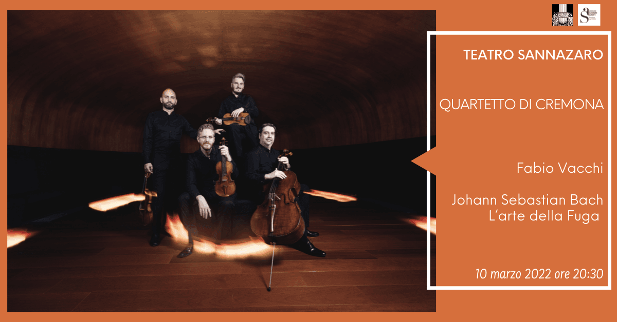 Giovedì 10 marzo 2022 alle ore 20.30 al Teatro Sannazaro, l’incontro tra antico e moderno caratterizza il concerto del Quartetto di Cremona con l’esecuzione del capolavoro incompiuto di Johann Sebastian Bach, L’Arte della Fuga BWV 1080, opera fra le più complesse mai scritte, culmine di virtuosismo polifonico, vertice fra i più alti della storia della musica. A introdurre L’Arte della Fuga, un’opera inedita di Fabio Vacchi, fra i più illustri compositori del nostro tempo, commissionata dallo stesso Quartetto e dal Comitato Amur di cui fa parte la Associazione Alessandro Scarlatti: il Quartetto n. 6, “Lettera a Johann Sebastian Bach”, in cui Vacchi rende omaggio a Bach citando l’incipit de L’Arte della Fuga in modo enigmatico. Con il principale intento di offrire un’interpretazione fedele alla partitura originale, mantenendo lo sviluppo delle voci così come scritto da Bach ed evitando quindi trascrizioni, in alcuni contrappunti il Quartetto di Cremona introduce nell’ ensemble una viola al posto del secondo violino e una viola tenore al posto di una normale. La viola tenore, infatti, è più grande e dal suono molto più profondo. In questo modo, le linee originali sono accuratamente seguite e chiaramente distinguibili, creando una fusione uniforme di tutte le voci.
