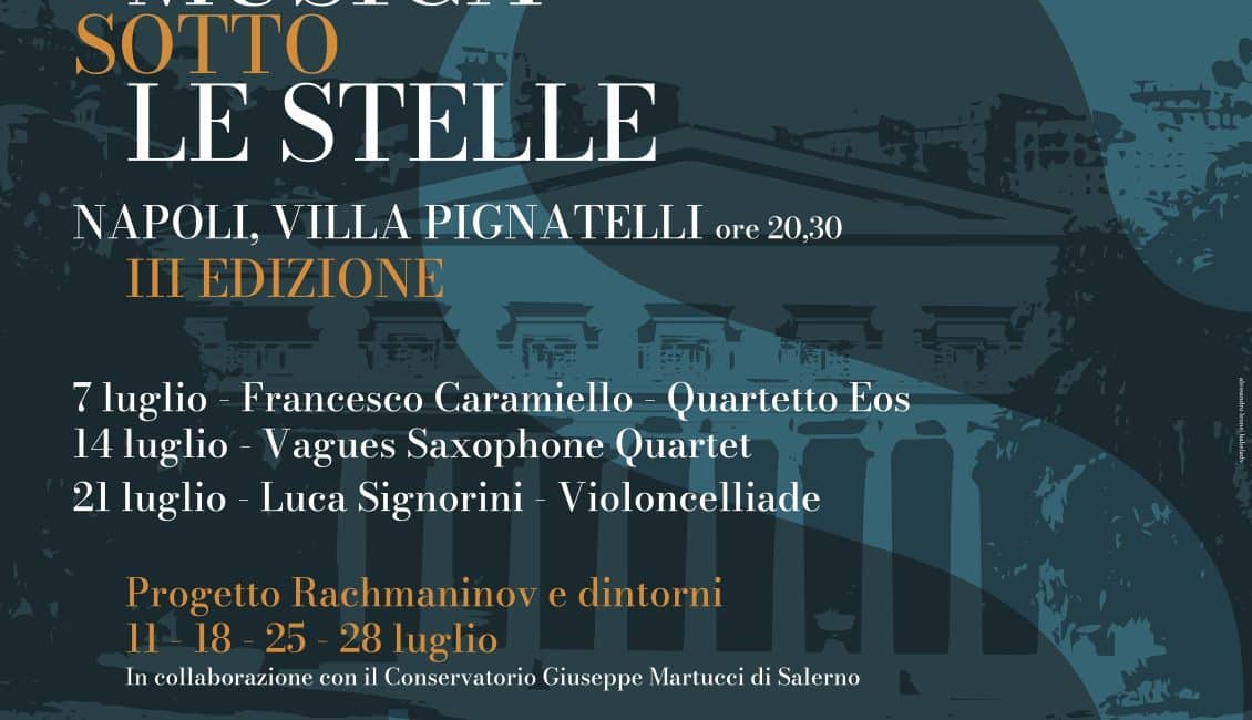L’Associazione Alessandro Scarlatti, in collaborazione con la Direzione regionale Musei Campania e con il Conservatorio Giuseppe Martucci di Salerno, con il patrocinio della Fondazione Emiddio Mele, presenta nell’incantevole scenario di Villa Pignatelli, dal 7 al 28 luglio la terza edizione della rassegna Musica sotto le Stelle.