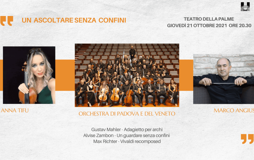 Note di sala Giovedì 21 ottobre 2021 – Teatro delle Palme – ore 20.30 ORCHESTRA DI PADOVA E DEL VENETO ANNA TIFU, violino MARCO ANGIUS, direttore Gustav Mahler – Adagietto per archi; Alvise Zambon – Un guardare senza confini;...