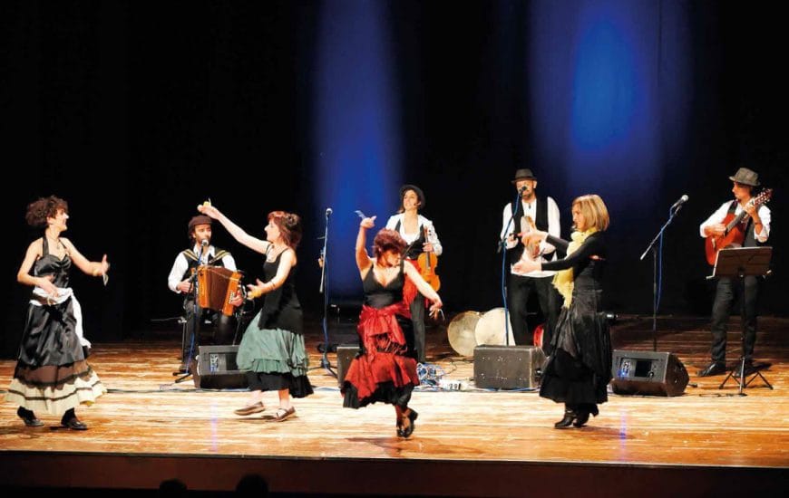 Domenica 7 luglio – ore 21 Foligno – Auditorium San Domenico UN PIZZICO DI TARANTA Ensemble “Le Tre Meno Un Quarto” Nicoletta Salvi voce e violino Antonio Merola voce, tamburi a cornice, percussioni Jaime Seves chitarra Compagnia di Danze Etniche...